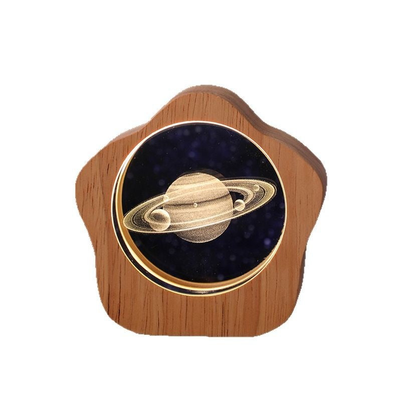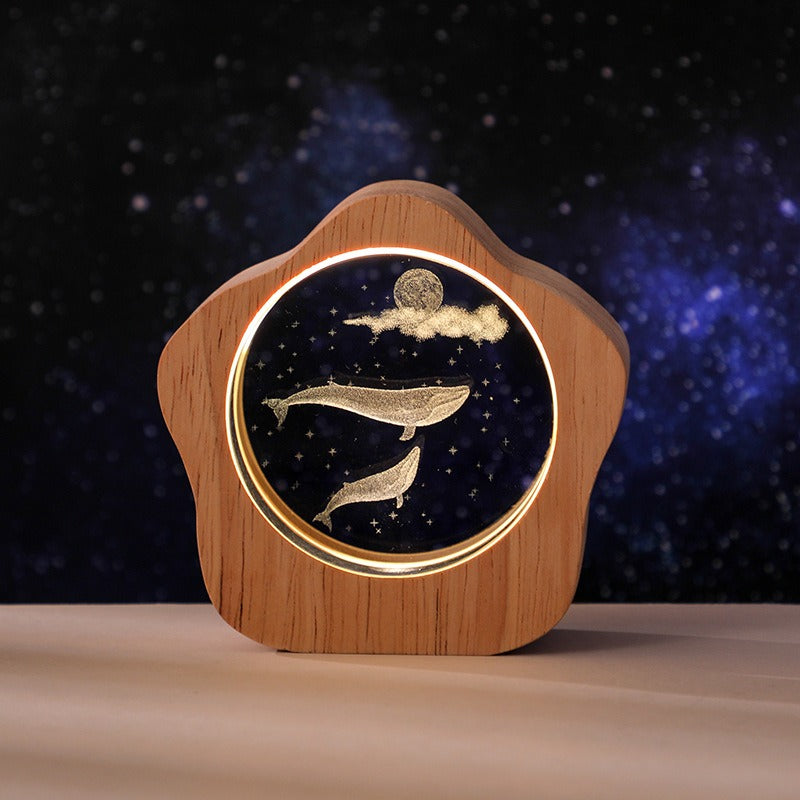 3D Carved Crystal Desktop Night Light – Wooden Frame Luminous Ornament, Perfect Small Gift for Girlfriends and Friends