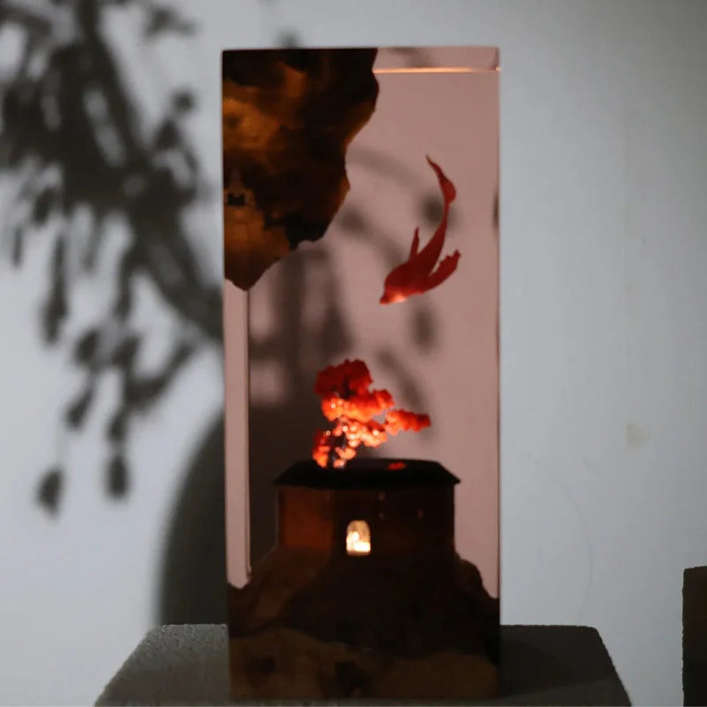 Chinese Style Big Fish Begonia Resin Night Light – 3D Relief Craft Ornament