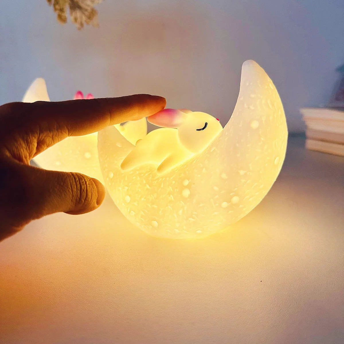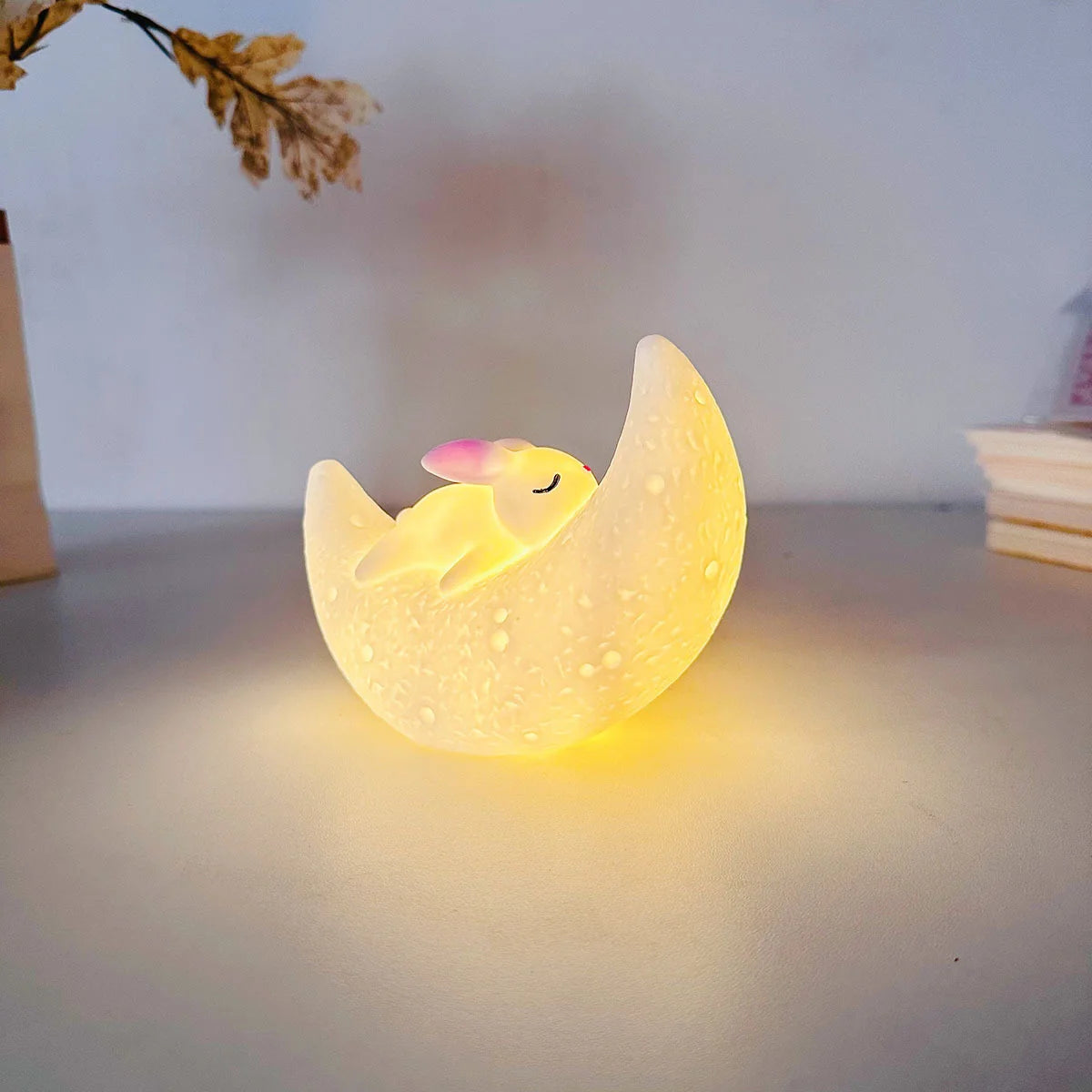 Creative Moon Night Light for Kids – Luminous Cartoon Rabbit Desk Lamp, Birthday Gift & Decorative Ornament