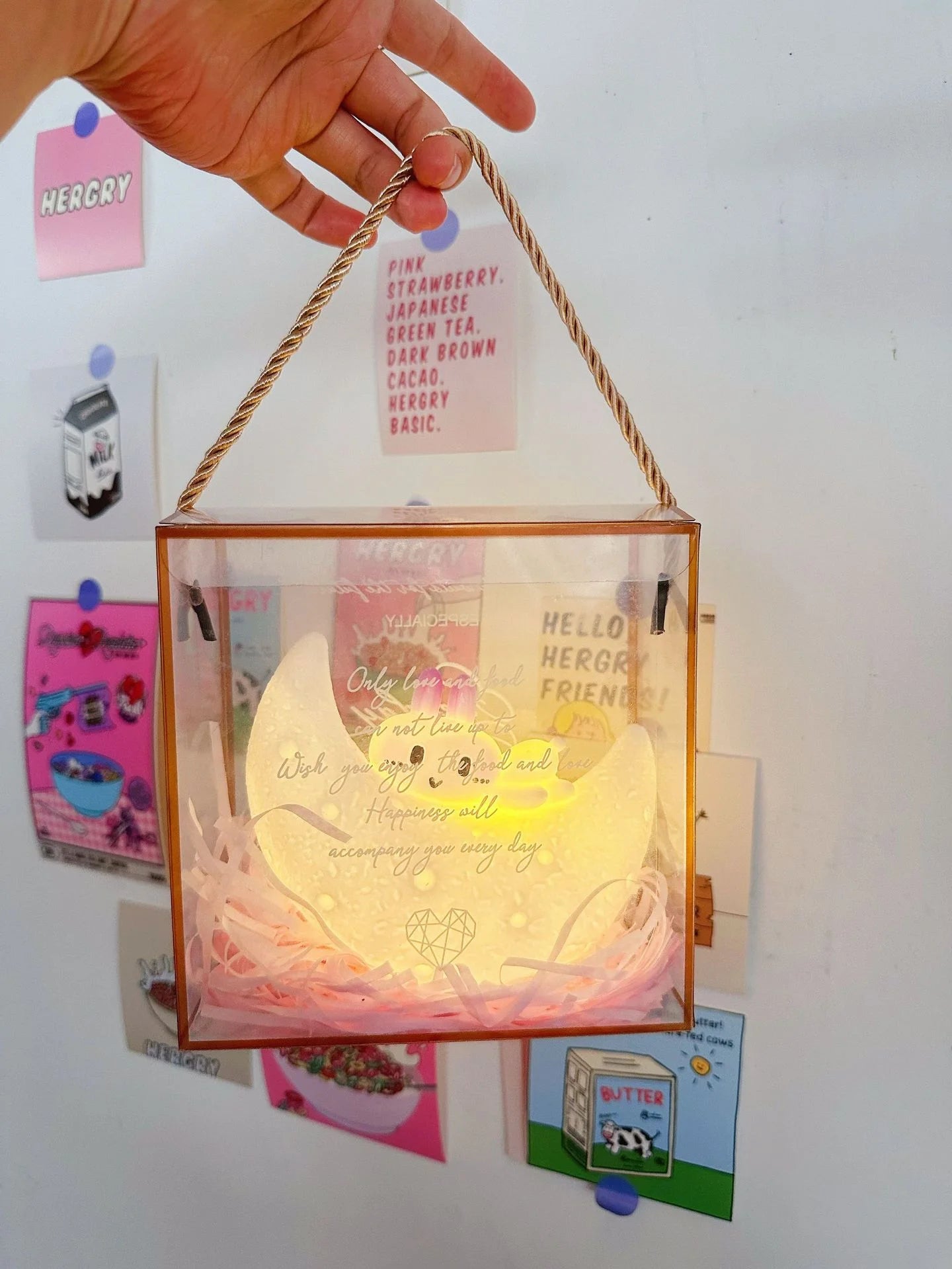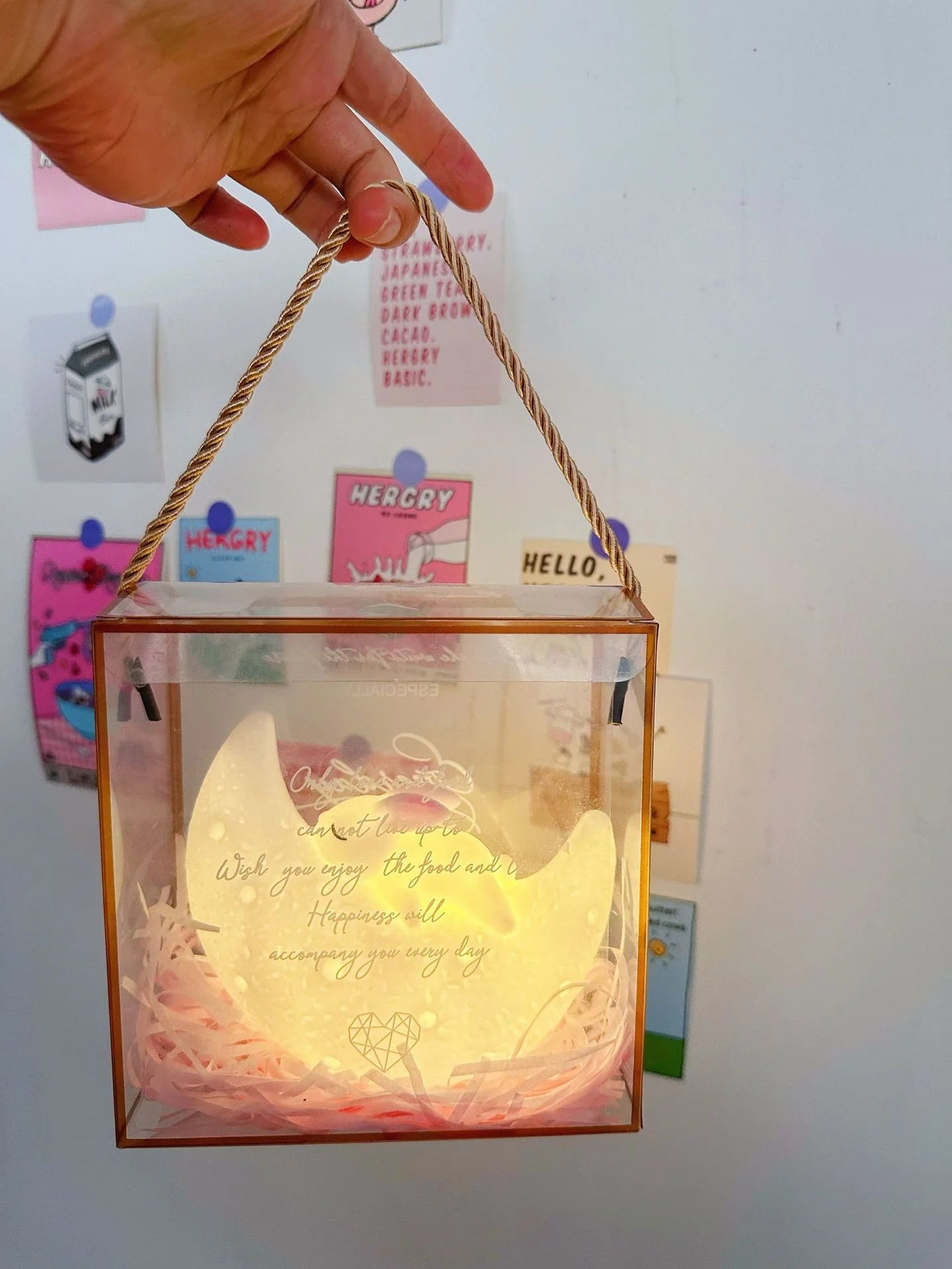 The Creative Moon Night Light contains a cute Kawaii Bunni seated gracefully on the radiant moon. Such a cute lamp sheds soft enchanting light in any room to ensure its cosiness and homely flair. The natural glow of LED makes you feel relaxed and helps you fall asleep without straining your eyes. It is low in temperature to touch and consumes minimal power which makes it safe for children and ideal for daily use. This cute decoration's ideal placement is either a bedroom, a nursery or a study set-up with an elegant addition of warmth and bliss. It can be stood up on a shelf or on a table or next to your bed to give you a soothing night effect. The Kawaii Bunni Night Light will also be a beautiful gift for children or a friend or someone who loves cute and cozy interior design decorations. Carry this moonlight bunny home and make your nights cozy and peaceful.