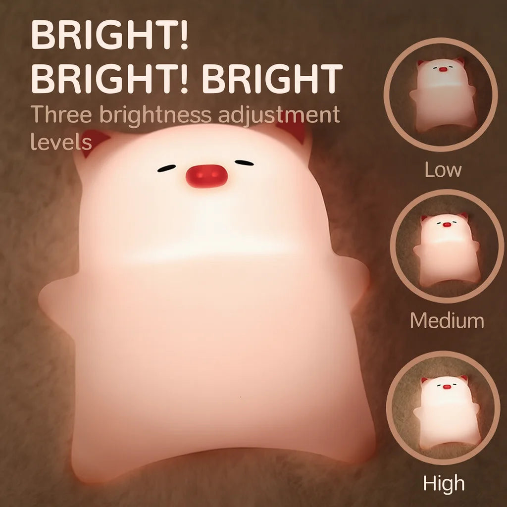 Popular Lying Flat Pig Pat Lamp – Silicone Night Light with Timer, Bedside Charging Lamp, Bedroom Atmosphere Light
