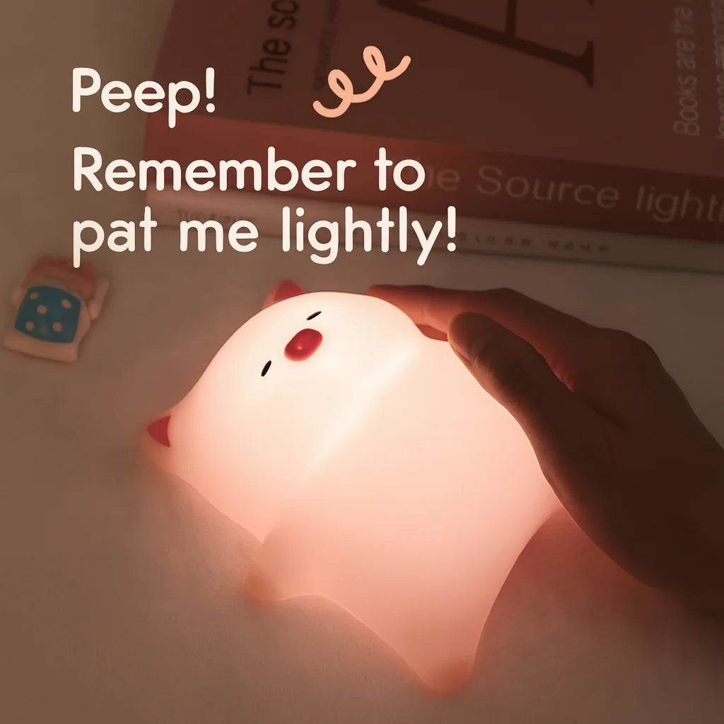 The Lying Flat Pig Pat Lamp is sure to add charm and warmth to the bedroom. This adorable lamp features a cute pig lying flat. It produces a gentle and natural yellow light that gives a feeling of calmness and comfort to the eyes suitable suitable for bedtime or creating a peaceful atmosphere. The light could be switched to other colors and brightness level with just a tap. It also recalls your previous setting and this way you can have your favorite light always. Being designed with smooth silicone material, it has a soft feel to touch and is safe for children. It is rechargeable as well hence can be used anywhere without tangled wires. Place on your bedside table, study table or nursery shelf to enjoy its lovely charm and beauty. It is an excellent pig night lamp that makes a perfect gift for a child, friend, or any other person who enjoys adorable room decorations.