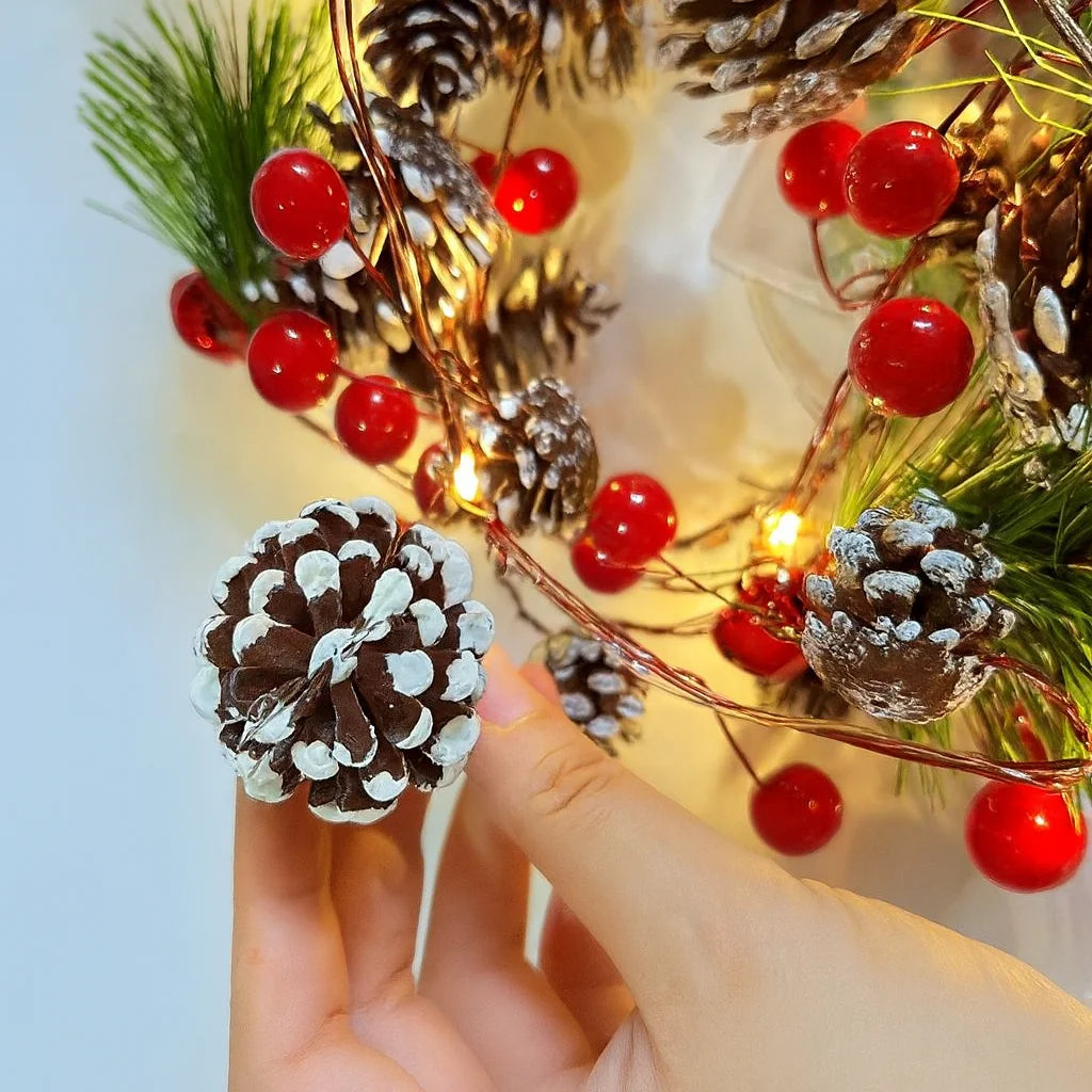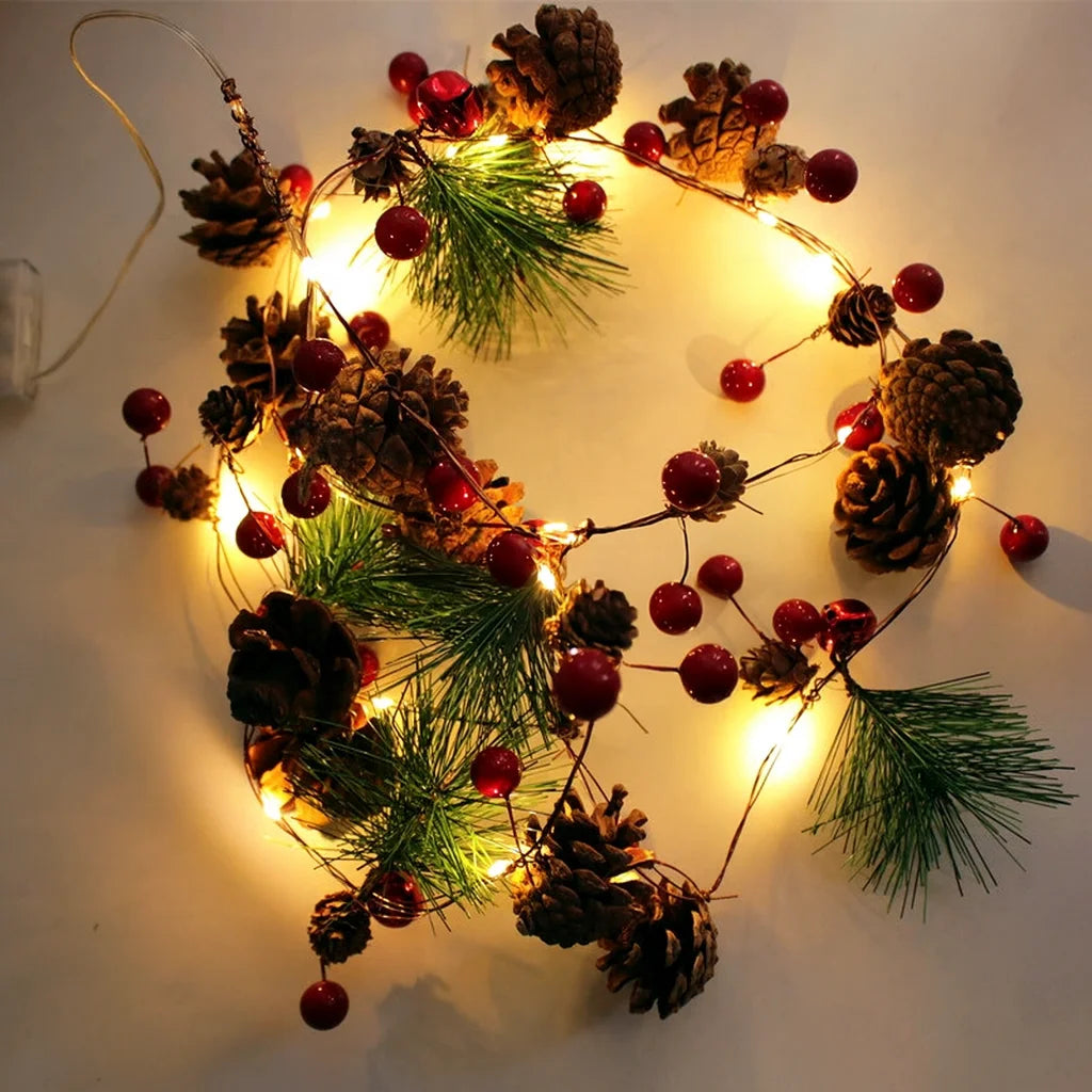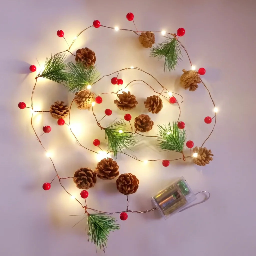LED Christmas Bell & Pine Cone String Lights – Battery Decorative Indoor Garland