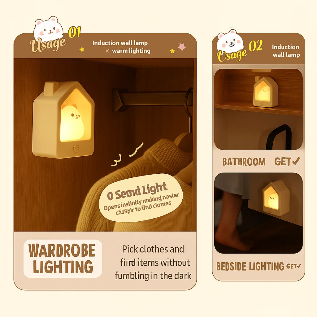 Rabbit Cartoon Night Light Baby Eye Protection LED Human Body Induction Bedside Lamp Dormitory Festival Atmosphere Light