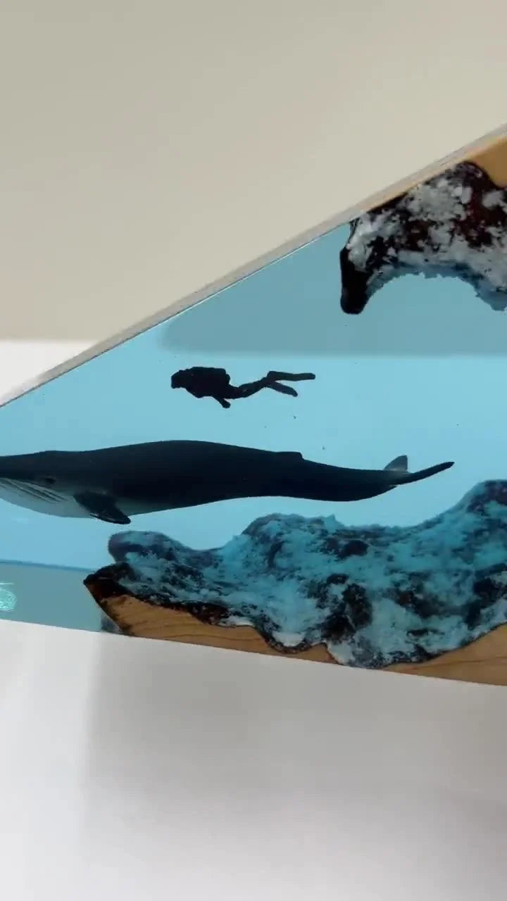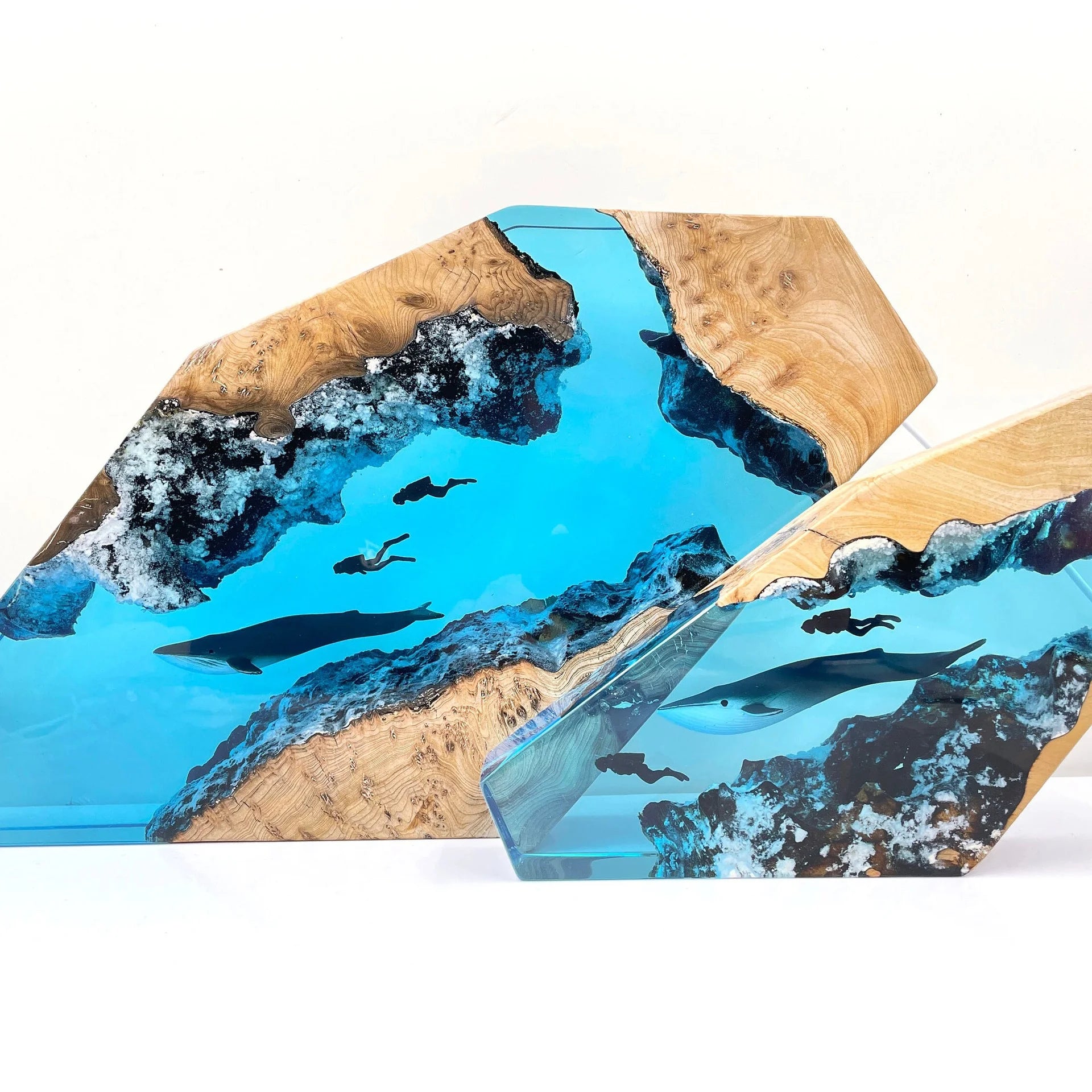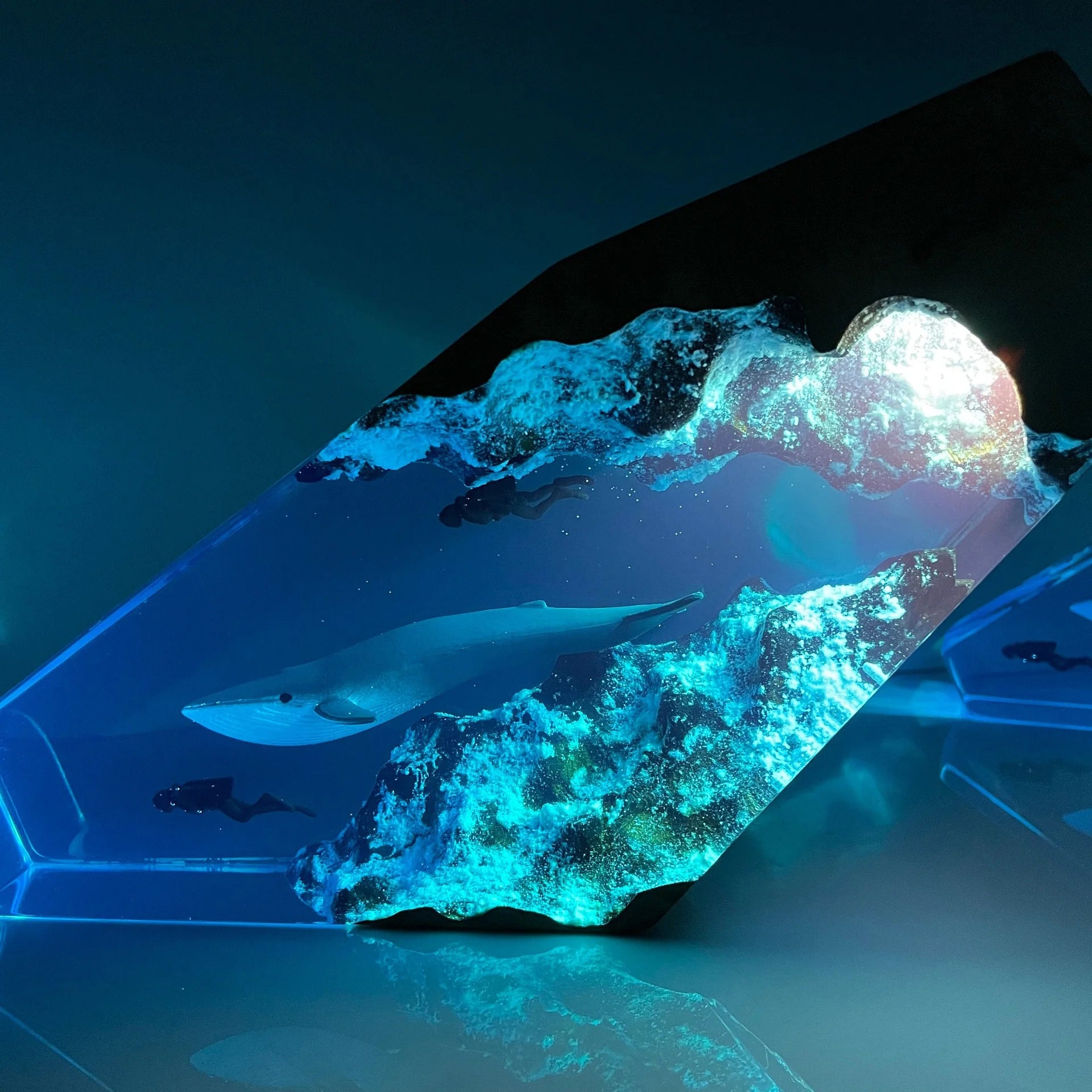 Blue Whale Couple Diver Resin Wood Lamp Large Epoxy Ocean Night Light Creative Home Decoration Father's Day or Halloween Gift