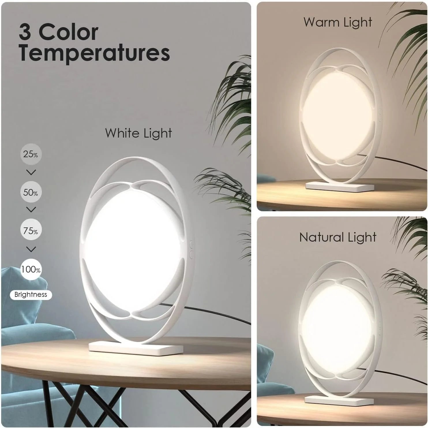 SAD Phototherapy Lamp Solar Powered Light Therapy Desk Lamp Eye Protection Mood Lamp for Home and Office