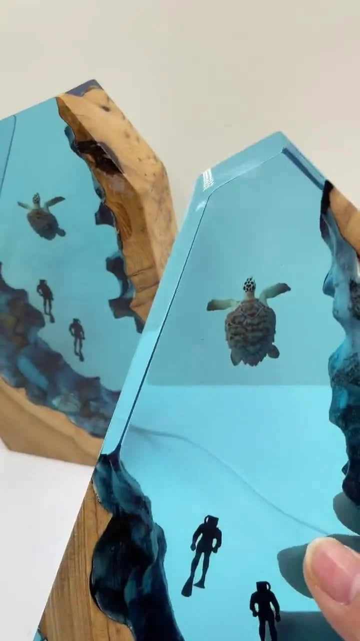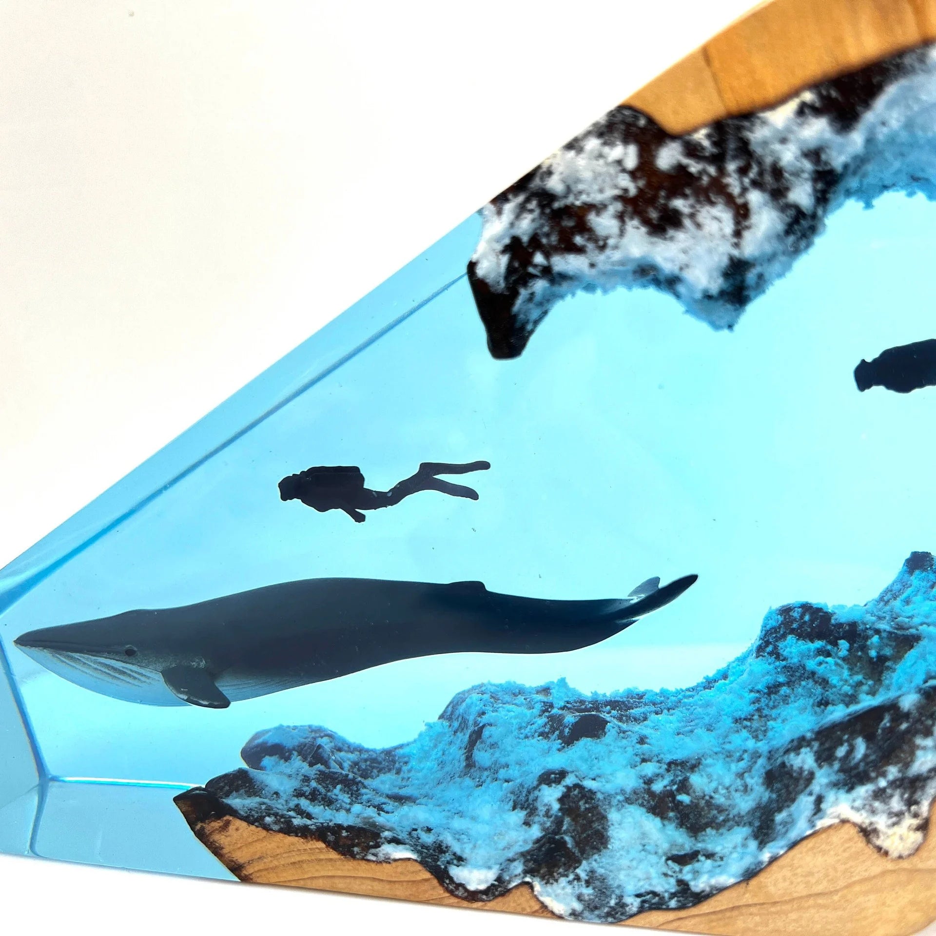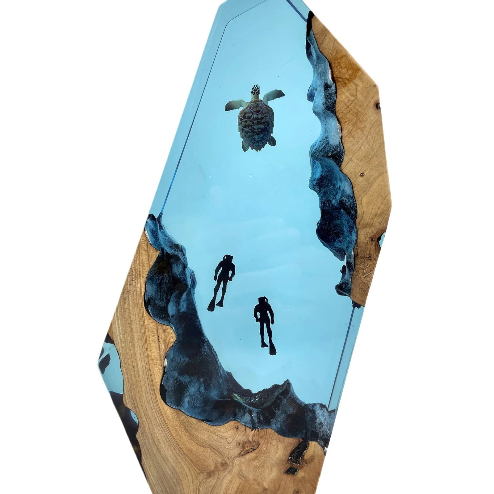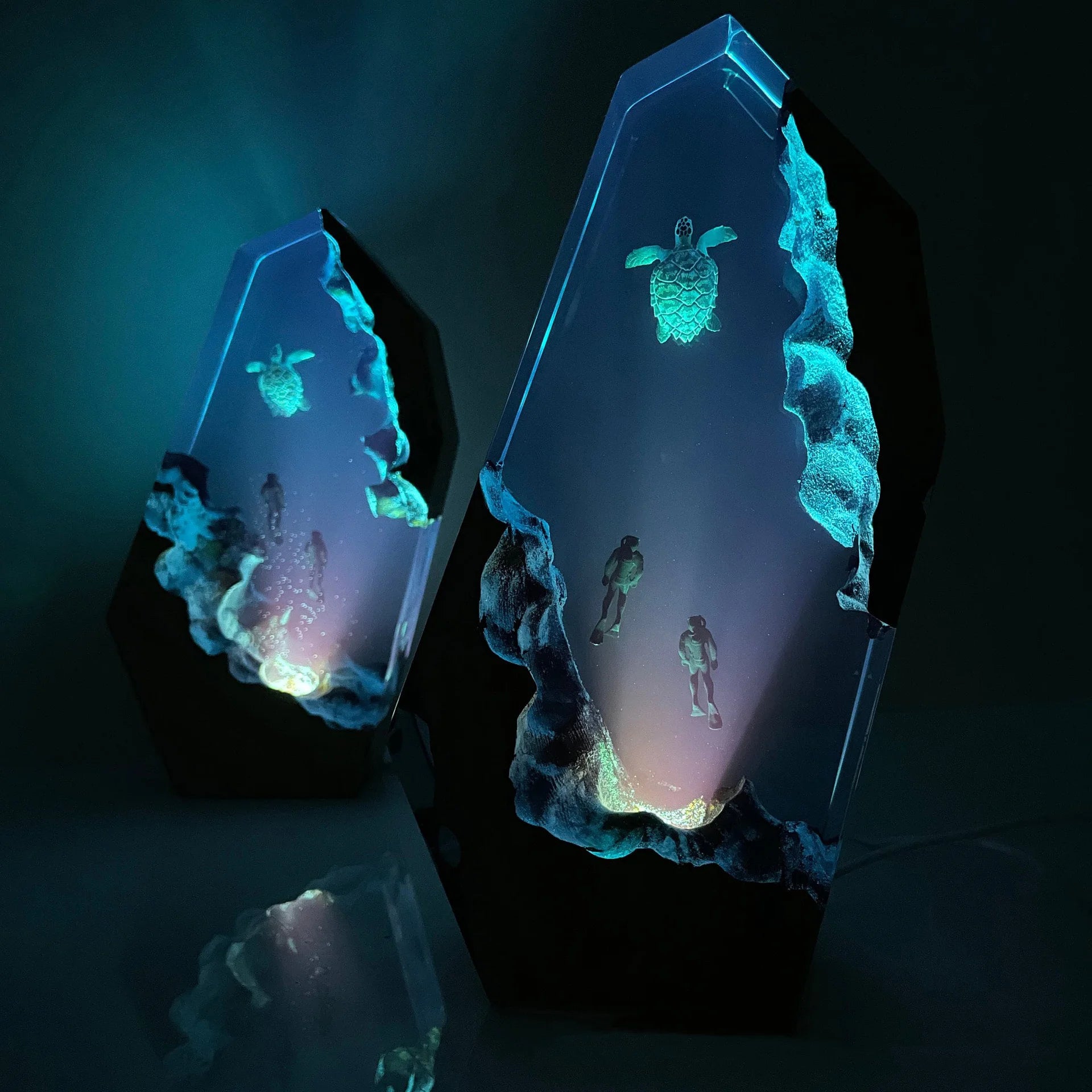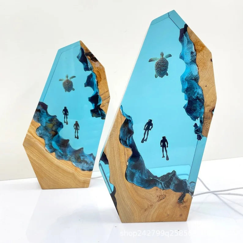 Sea Turtle and Diver Resin Wood Night Light Large Epoxy Ocean Table Lamp Creative Home Decor Mother's Day Gift