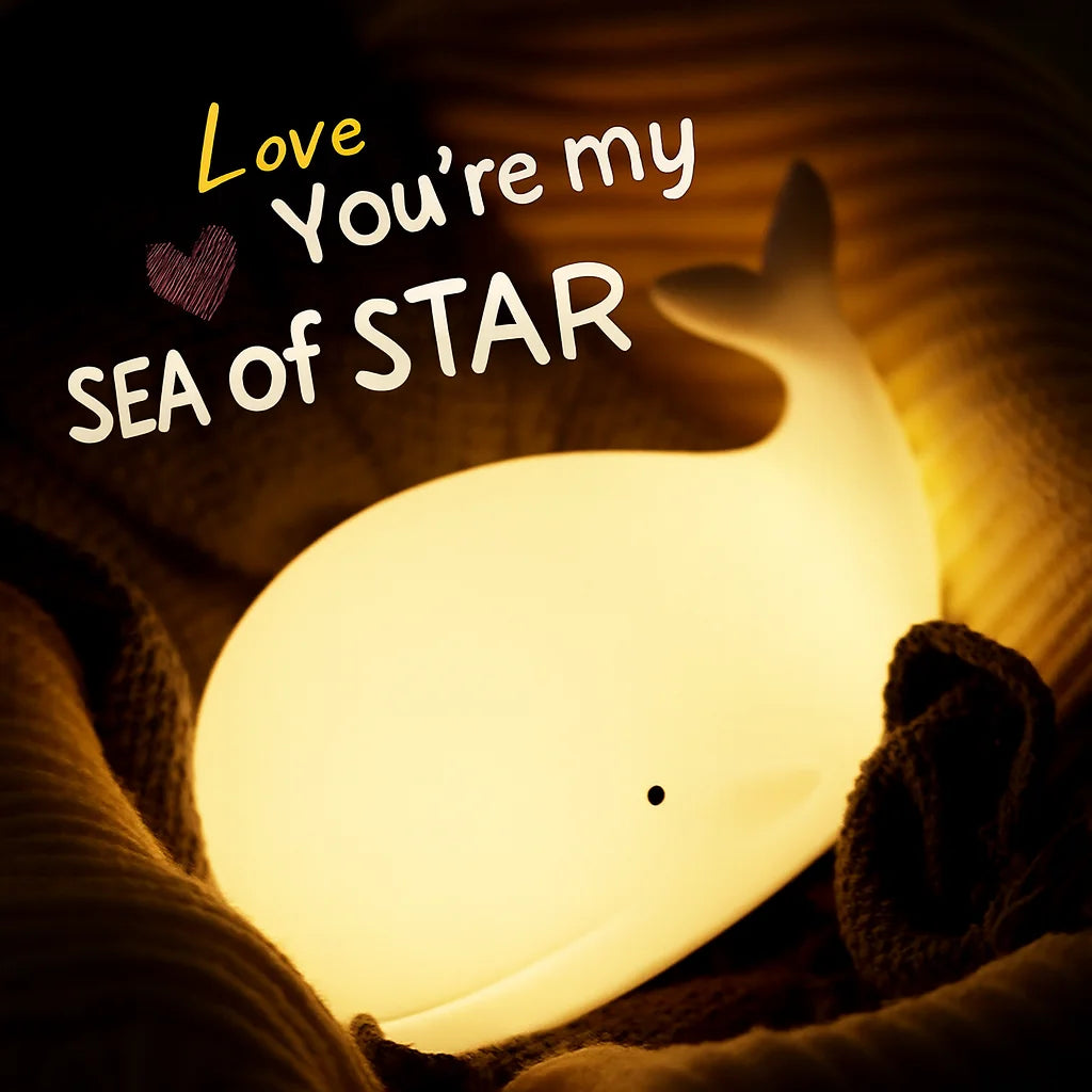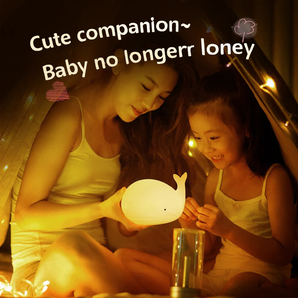 Ocean Whale Patting Silicone Lamp – Baby Feeding Night Light, Eye Protection Bedside Atmosphere Light, USB Rechargeable